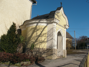 Auf dem Pfarrweg vom Pfarrhof zur Kirche wurde neben dem Eingang der alten Volksschule die Schulkapelle angebaut. Der Eingang ist nach Südwesten ausgerichtet.