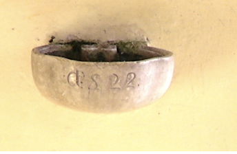 Gleich rechts neben dem Eingang befindet sich ein Weihwasserbecken, auf dem die Jahreszahl 1822, vermutlich der Erbauung oder Einweihung eingemeißelt ist.